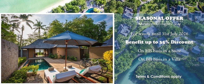 Situated on the North beach of Port Launay these one bedroom villas off er the ultimate beachside accommodation. Each is spaciously designed and stylishly decorated with large en-suite bathrooms, private swimming pool, pergola for relaxation, LCD TV, mac mini, mini-bar, tea and coff ee facilities, Nespresso machine with capsules, complimentary bicycles and complimentary WI-FI.